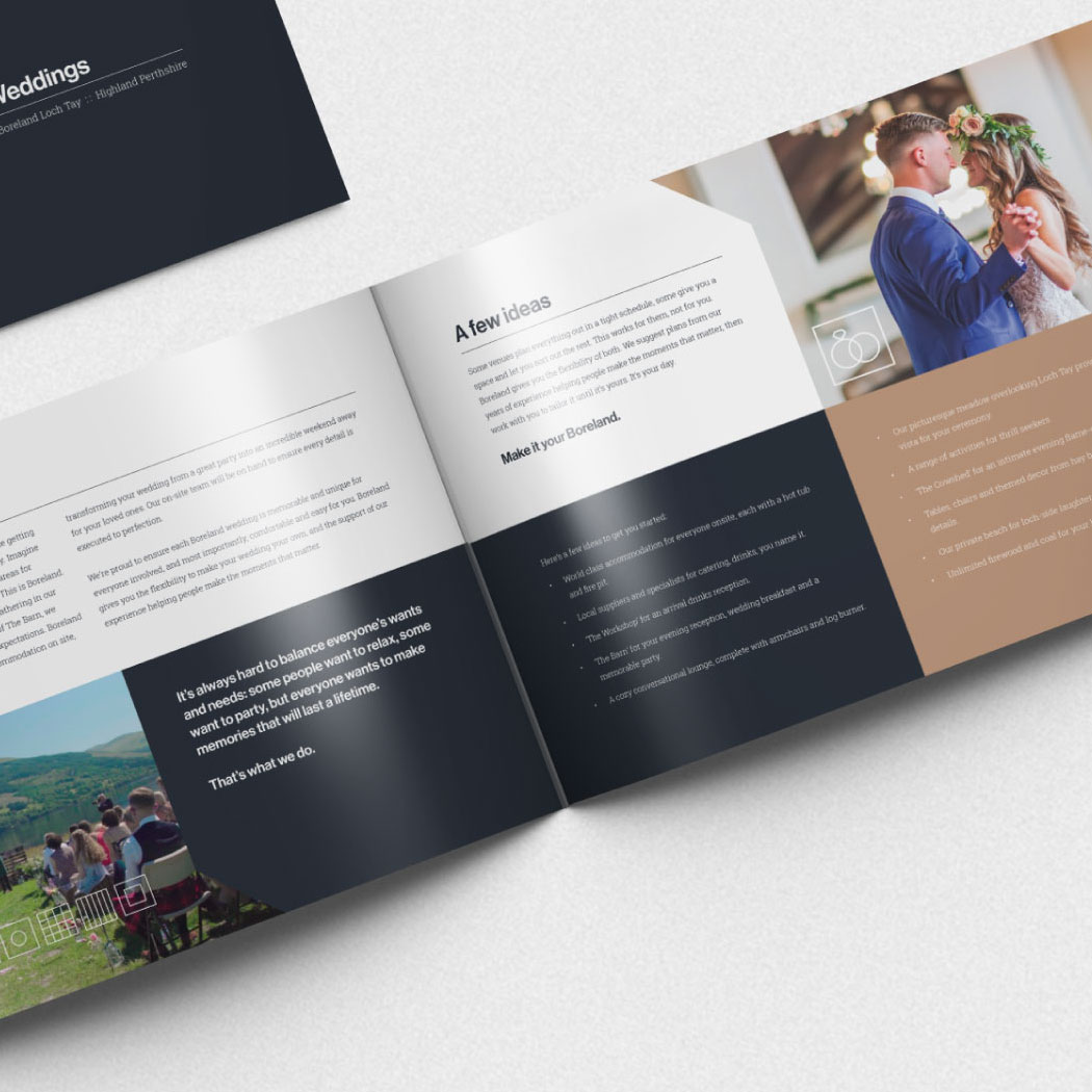 Whether you’re looking for an adventure or a retreat, a get-together or a getaway, Boreland Loch Tay is your ideal destination. When we first met them, this homegrown Scottish business was looking for new ways to evolve beyond its core stag/hen party offering. In the wake of the COVID-19 pandemic, restricted travel and the resurgence of staycations, we saw an opportunity to broaden their appeal — to develop a new model and brand that could encompass all kinds of bookings, from weddings, couples and families to corporate events and away days.