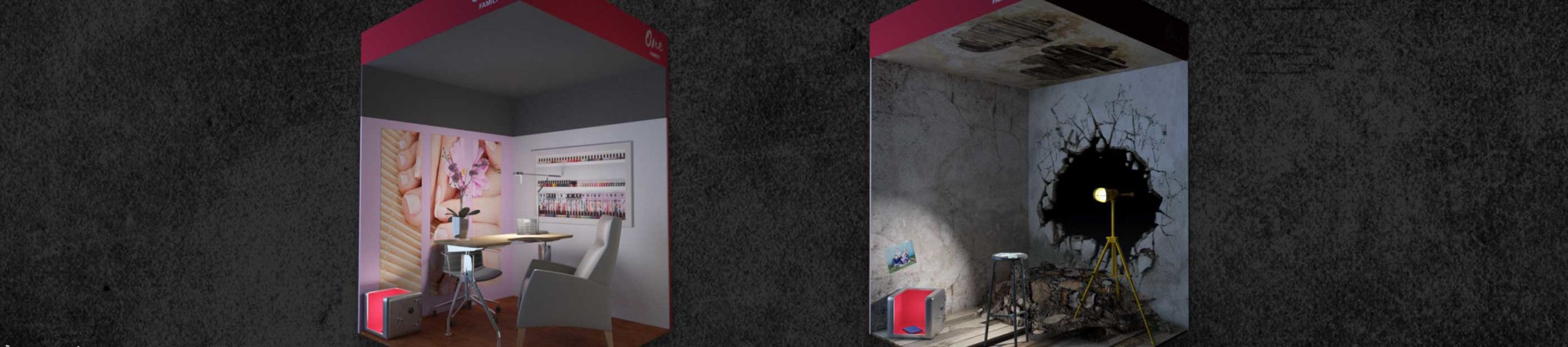 We designed five different scenarios, each with an actor portraying accounts from a victim of human trafficking in London. Each was designed and built in 3D to represent the kind of environments and challenges that each victim experienced.