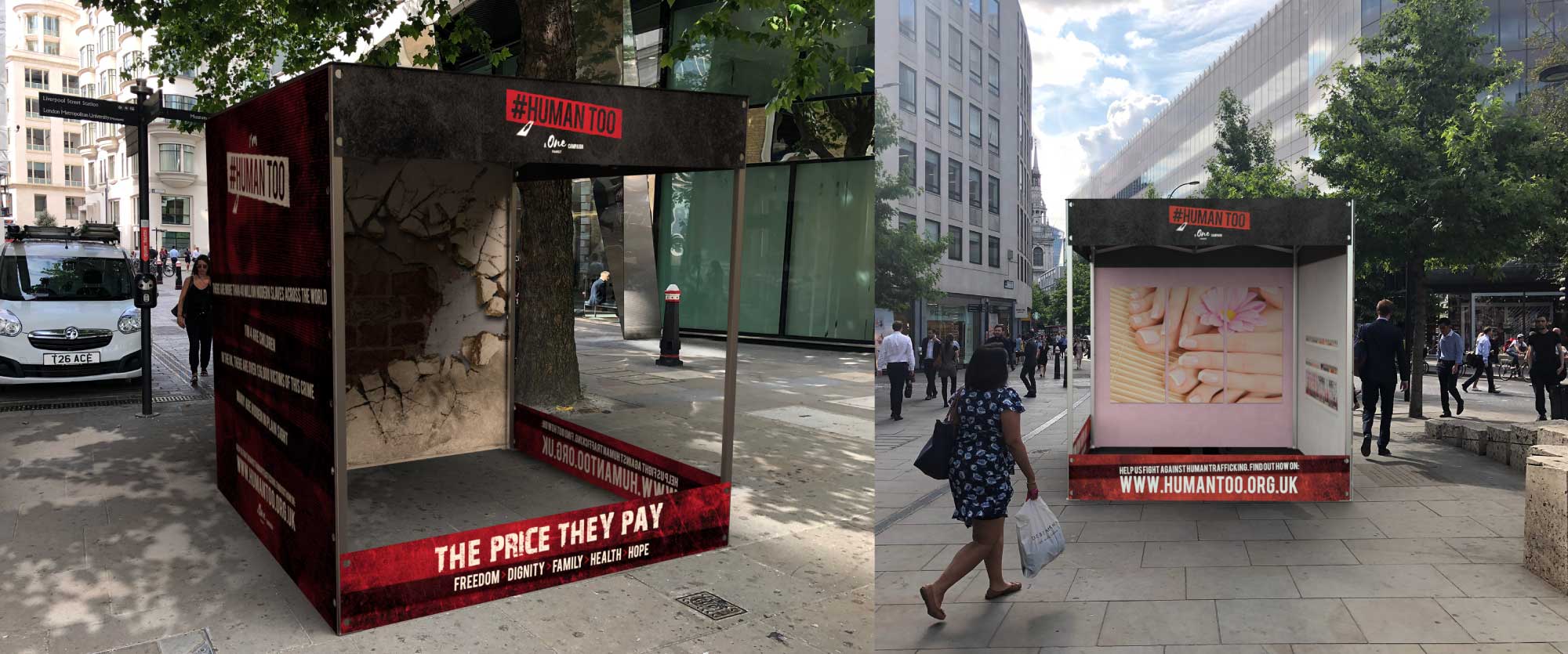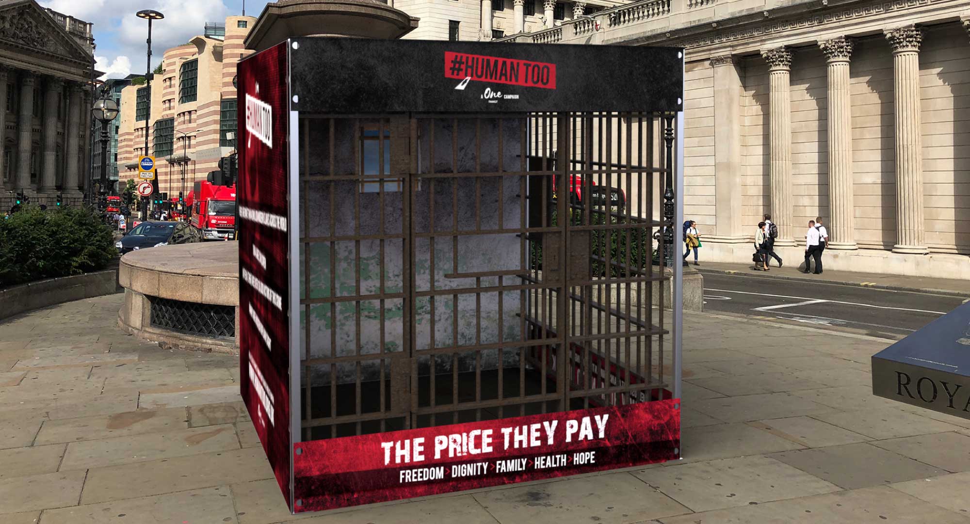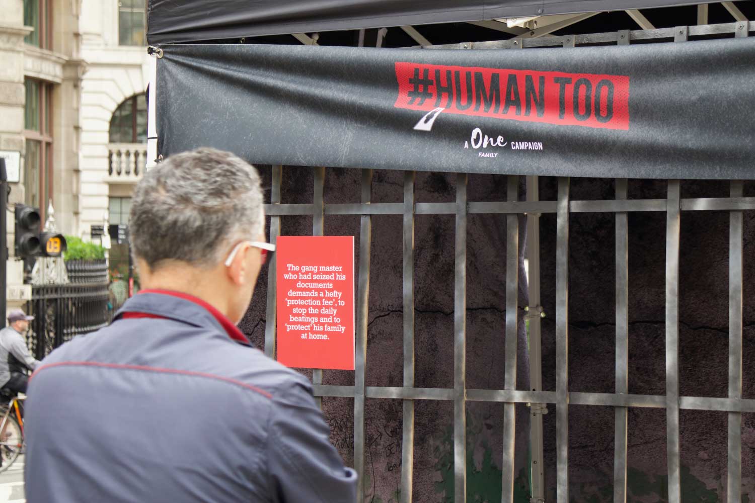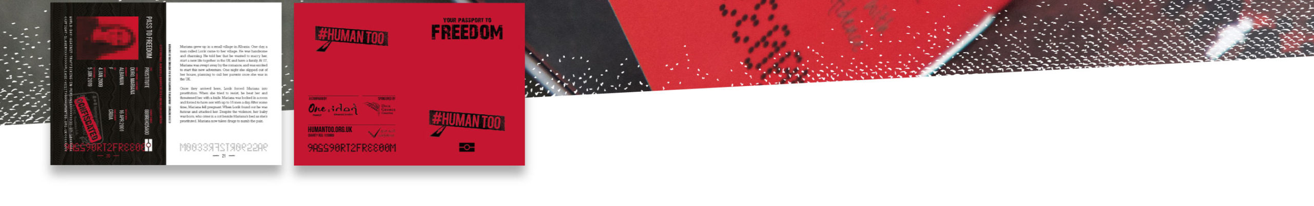 We realised that although the experiential installations would be thought-provoking and impactful, the effect would be quickly forgotten. So we created ‘passports to freedom’, containing pocket-friendly testimonies from victims and outlining One Family’s plans to help. This gave an opportunity for those in a hurry to later digest the stories, understand the challenge and commit to helping.