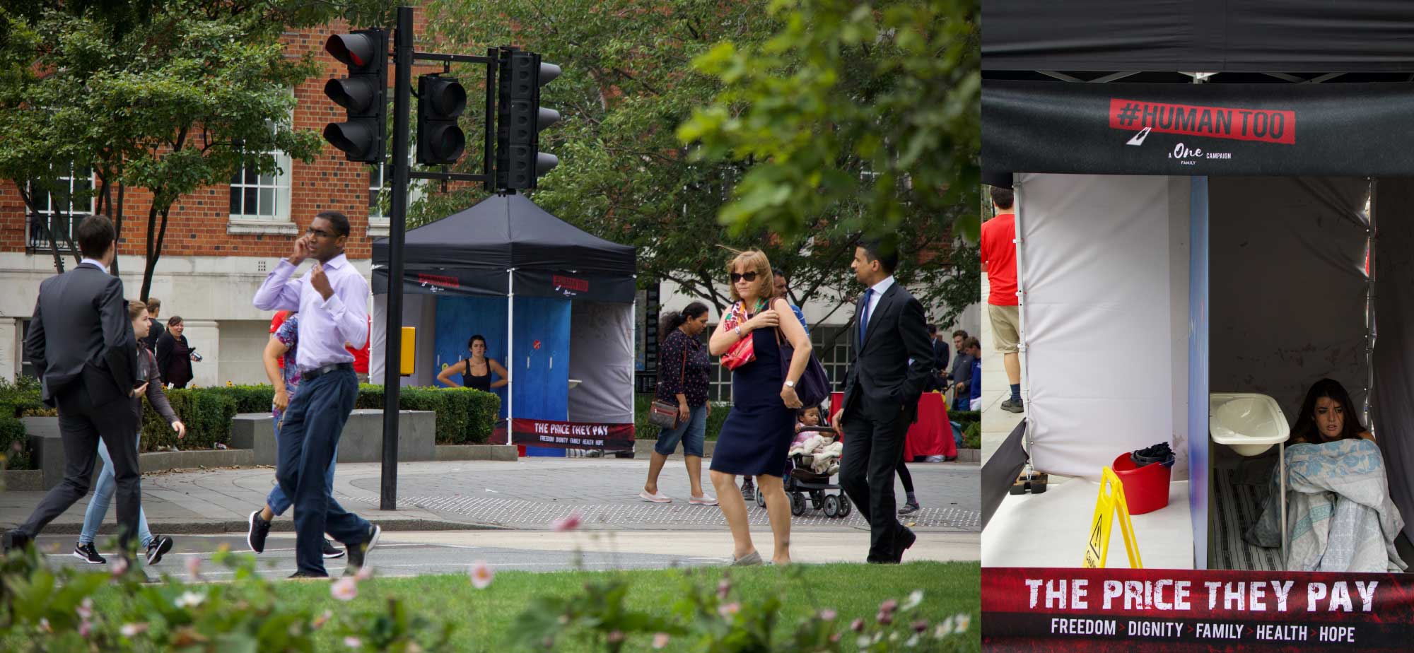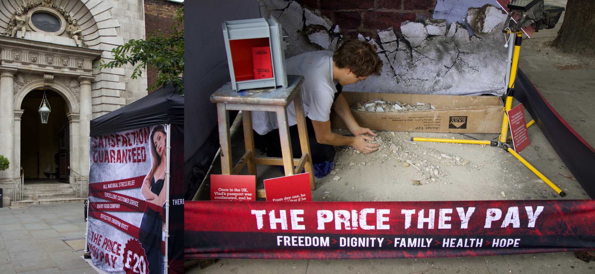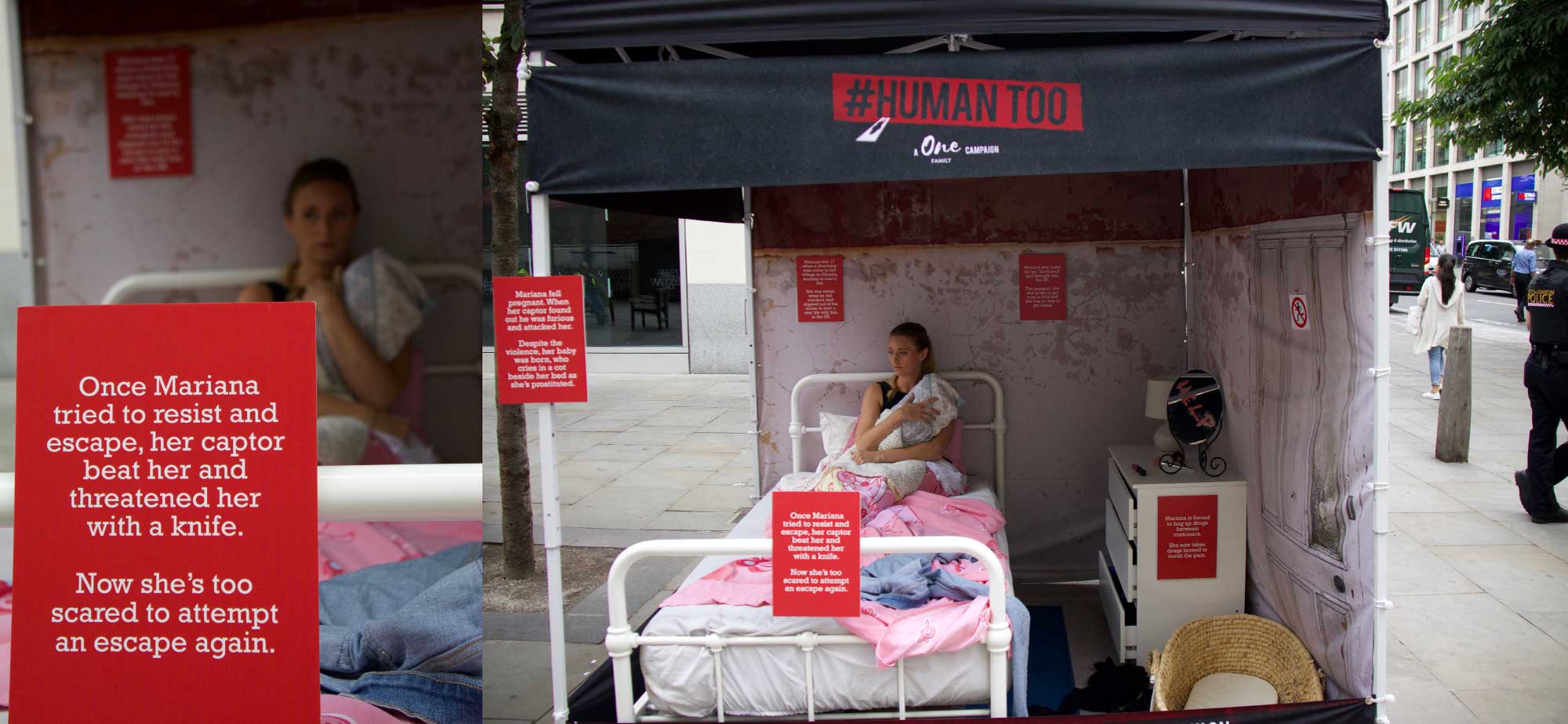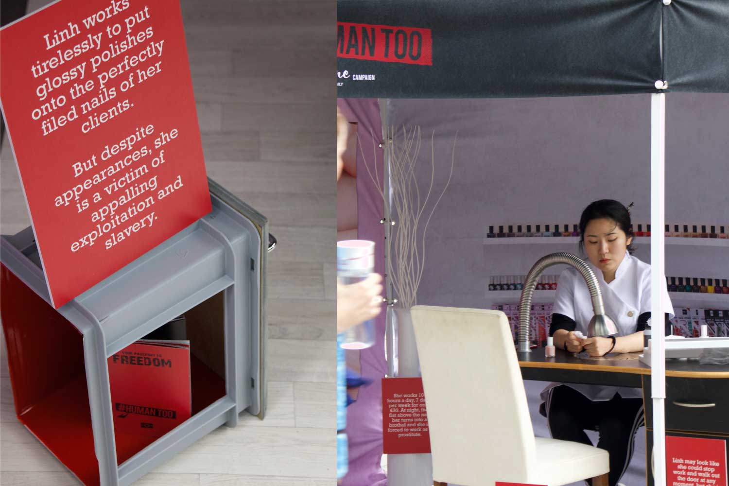 We realised that although the experiential installations would be thought-provoking and impactful, the effect would be quickly forgotten. So we created ‘passports to freedom’, containing pocket-friendly testimonies from victims and outlining One Family’s plans to help. This gave an opportunity for those in a hurry to later digest the stories, understand the challenge and commit to helping.