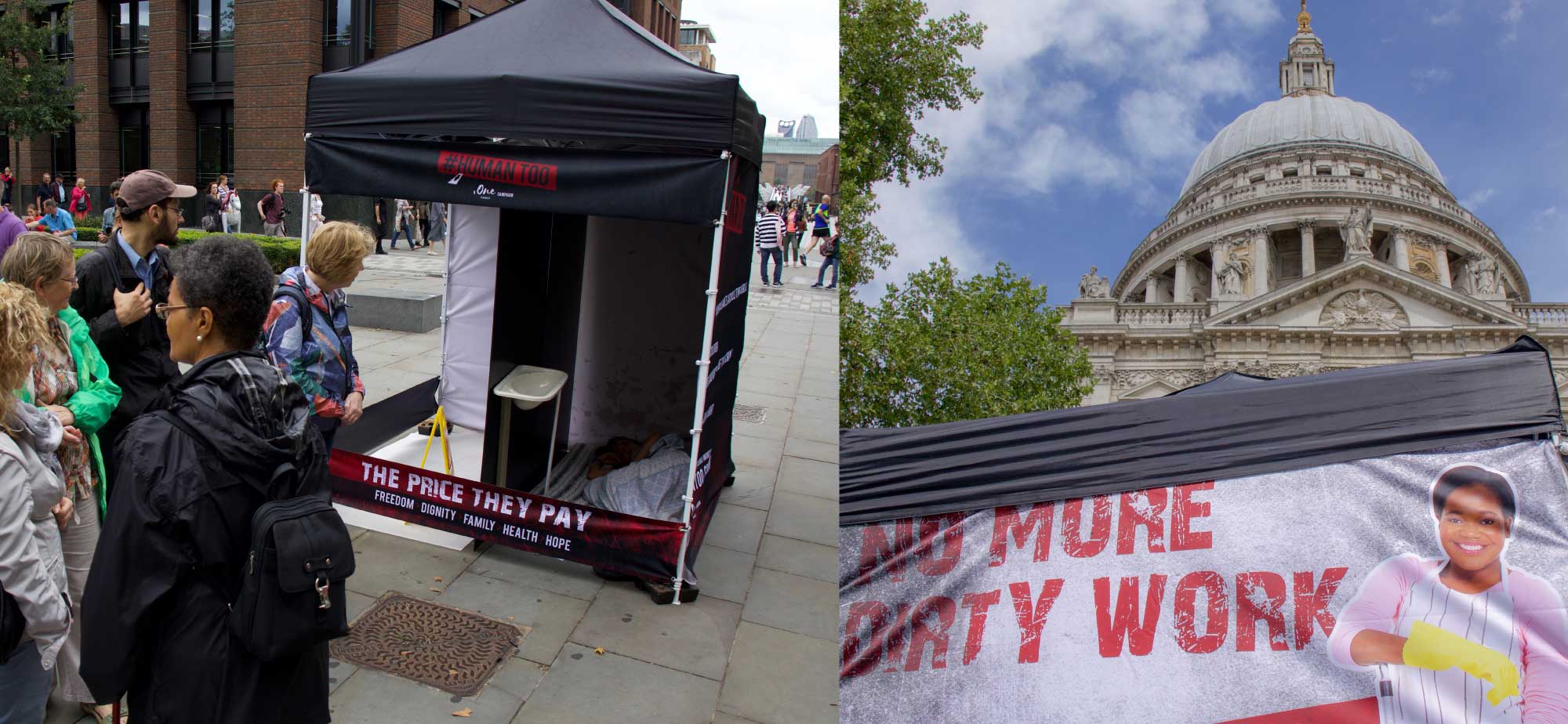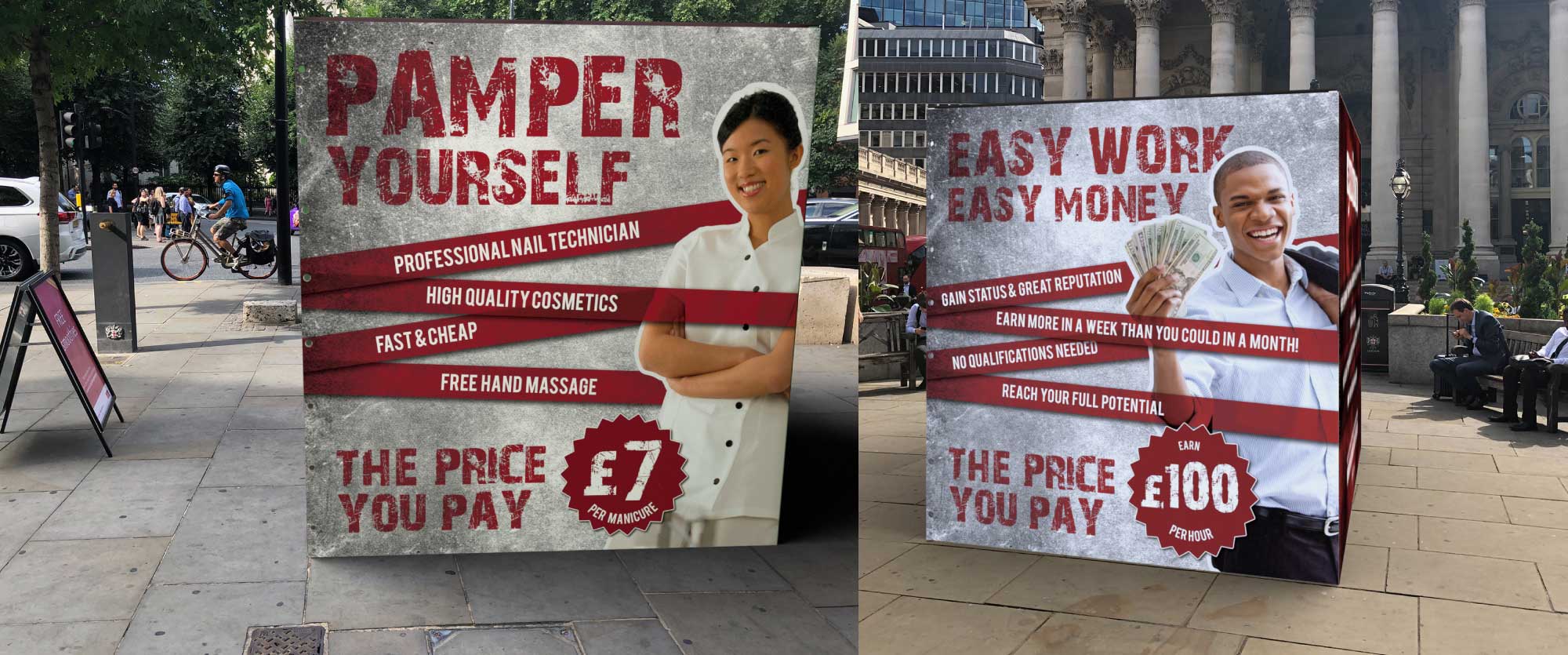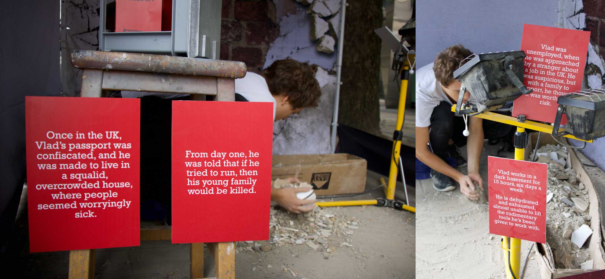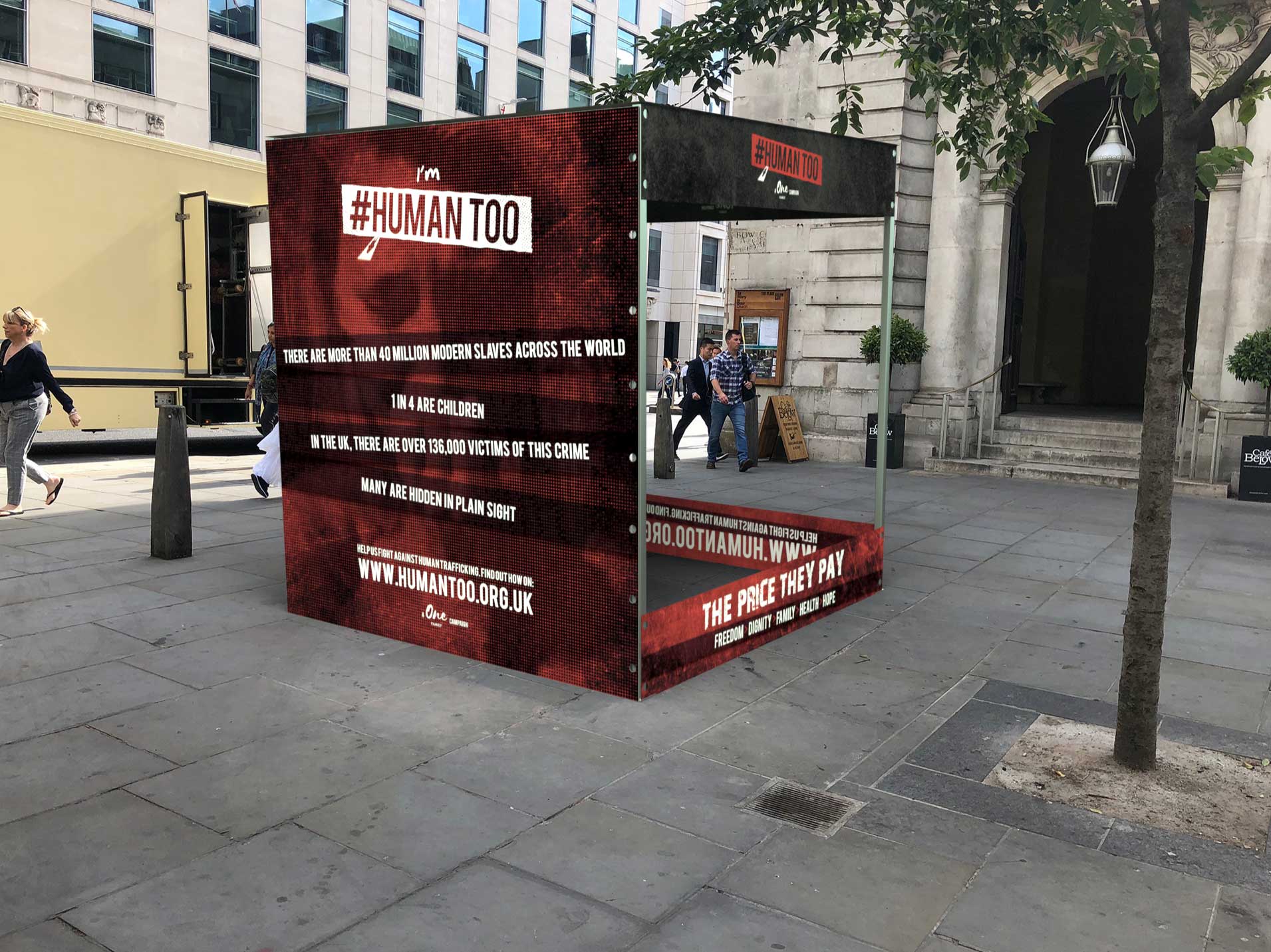 We realised that although the experiential installations would be thought-provoking and impactful, the effect would be quickly forgotten. So we created ‘passports to freedom’, containing pocket-friendly testimonies from victims and outlining One Family’s plans to help. This gave an opportunity for those in a hurry to later digest the stories, understand the challenge and commit to helping.